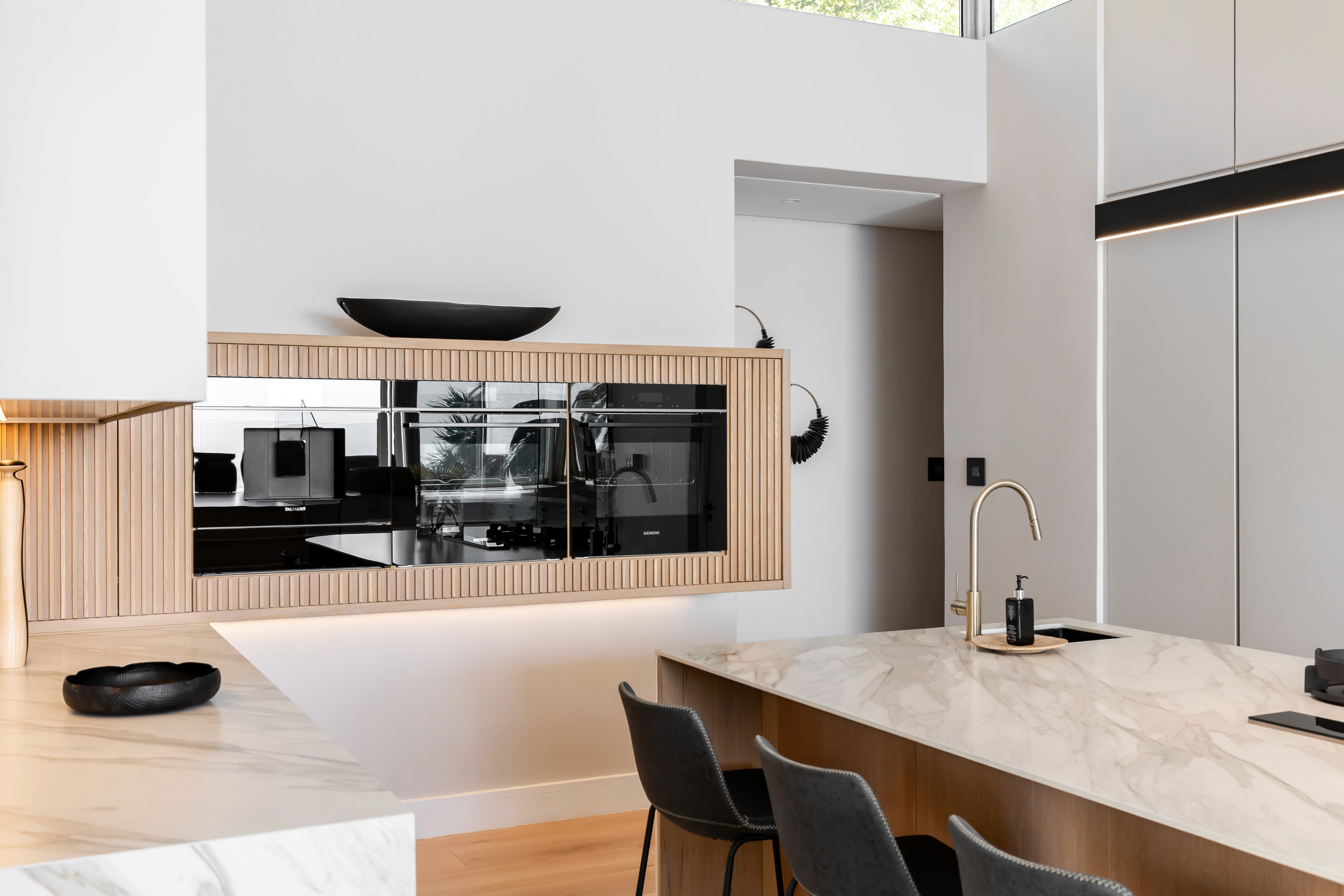 This home is a masterpiece of modern design, where every detail is curated to create an atmosphere of sophisticated comfort. The seamless integration of natural textures, such as warm wood and elegant marble, with sleek, state-of-the-art appliances defines the innovative kitchen space. An exquisite wine room showcases collections as a work of art, while the living and dining areas are designed for seamless entertaining and relaxed living. Abundant natural light filters through, highlighting the home's striking architectural features and creating a warm, inviting ambiance in every room. From the integrated technology to the thoughtfully designed spaces, this home is a testament to the belief that luxury is found in the unexpected details.